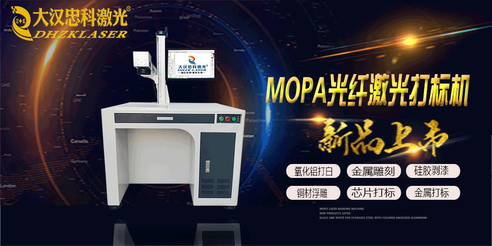 - 首先从机器的打样效果和适用范围做详细说明:mopa激光打标机适用于金属及非金属材料的精细标刻工艺。如数码产品部件激光刻黑、手机按键、透光按键、手机外壳、按键面板、电子元器件、氧化、塑料标记、工艺品礼品、氧化处理及镀膜电镀喷涂等表面处理。MOPA激光打标机采用直接电调制半导体激光器作为种子源(MOPA)方案的高功率光纤激光器,本设备输出波长为 1064nm(不可见光),频率可调范围1-4000KHZ,脉宽可调范围1-500ns,光束质量更高,平均输出功率超过 20W 或 30W(峰值功率超过 10000W),具有完美的激光特性和良好的脉冲形状控制能力。具有高平均功率高峰值功率、多种脉宽可选、多种重复频率可调,首脉冲可用,连续模式可选,脉宽可在线修改等特点,与调Q光纤激光器相比,MOPA光纤激光器脉冲频率和脉冲宽度是独立可控的,通过两项激光参数调整搭配,可实现恒定的高峰值功率输出以及能适用于更广泛的标刻基材。MOPA可以根据不同的材料选用不同的“档位”此外,把调Q激光器的不可能变成MOPA的可能,更高的输出功率使其在高速打标的应用中优势尤为突出是太阳能光伏领域、薄膜切割、薄板材料切割、焊接、材料表面清洗、精细打标、材料打深雕刻、钻孔、焊接飞行打标剥阳极、剥涂层等工业应用的理想选择。